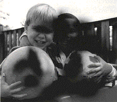 | Diabetic retinopathy occurs when diabetes damages the tiny blood vessels in the retina. At this point, most people do not notice any changes in their vision. Some people develop a condition called macular edema. It occurs when the damaged blood vessels leak fluid and lipids onto the macula, the part of the retina that lets us see detail. The fluid makes the macula swell, blurring vision. As the disease progresses, it enters its advanced, or proliferative, stage. Fragile, new blood vessels grow along the retina and in the clear, gel-like vitreous that fills the inside of the eye. Without timely treatment, these new blood vessels can bleed, cloud vision, and destroy the retina. Who is at risk for this disease? All people with diabetes are at risk--those with Type I diabetes (juvenile onset) and those with Type II diabetes (adult onset). During pregnancy, diabetic retinopathy may also be a problem for women with diabetes. It is recommended that all pregnant women with diabetes have dilated eye examinations each trimester to protect their vision. What are its symptoms? Diabetic retinopathy often has no early warning signs. At some point, though, you may have macular edema. It blurs vision, making it hard to do things like read and drive. In some cases, your vision will get better or worse during the day. View of boys by person with normal vision. View of boys by person with diabetic retinopathy. |