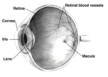| As new blood vessels form at the back of the eye, they can bleed (hemorrhage) and blur vision. The first time this happens it may not be very severe. In most cases, it will leave just a few specks of blood, or spots, floating in your vision. They often go away after a few hours. These spots are often followed within a few days or weeks by a much greater leakage of blood. The blood will blur your vision. In extreme cases, a person will only be able to tell light from dark in that eye. It may take the blood anywhere from a few days to months or even years to clear from the inside of your eye. In some cases, the blood will not clear. You should be aware that large hemorrhages tend to happen more than once, often during sleep. How is it detected? Diabetic retinopathy is detected during an eye examination that includes: Visual acuity test: This eye chart test measures how well you see at various distances. Pupil dilation: The eye care professional places drops into the eye to widen the pupil. This allows him or her to see more of the retina and look for signs of diabetic retinopathy. After the examination, close-up vision may remain blurred for several hours. Ophthalmoscopy: This is an examination of the retina in which the eye care professional: (1) looks through a device with a special magnifying lens that provides a narrow view of the retina, or (2) wearing a headset with a bright light, looks through a special magnifying glass and gains a wide view of the retina. Tonometry: A standard test that determines the fluid pressure inside the eye. Elevated pressure is a possible sign of glaucoma, another common eye problem in people with diabetes. Your eye care professional will look at your retina for early signs of the disease, such as: (1) leaking blood vessels, (2) retinal swelling, such as macular edema, (3) pale, fatty deposits on the retina--signs of leaking blood vessels, (4) damaged nerve tissue, and (5) any changes in the blood vessels. Should your doctor suspect that you need treatment for macular edema, he or she may ask you to have a test called fluorescein angiography. In this test, a special dye is injected into your arm. Pictures are then taken as the dye passes through the blood vessels in the retina. This test allows your doctor to find the leaking blood vessels. How is it treated? There are two treatments for diabetic retinopathy. They are very effective in reducing vision loss from this disease. In fact, even people with advanced retinopathy have a 90 percent chance of keeping their vision when they get treatment before the retina is severely damaged. These two treatments are laser surgery and vitrectomy. It is important to note that although these treatments are very successful, they do not cure diabetic retinopathy. Laser Surgery Laser surgery is performed in a doctor's office or eye clinic. Before the surgery, your ophthalmologist will: (1) dilate your pupil and (2) apply drops to numb the eye. In some cases, the doctor also may numb the area behind the eye to prevent any discomfort. The lights in the office will be dim. As you sit facing the laser machine, your doctor will hold a special lens to your eye. During the procedure, you may see flashes of light. These flashes may eventually create a stinging sensation that makes you feel a little uncomfortable. You may leave the office once the treatment is done, but you will need someone to drive you home. Because your pupils will remain dilated for a few hours, you also should bring a pair of sunglasses. For the rest of the day, your vision will probably be a little blurry. If your eye hurts a bit, your eye care professional can suggest a way to control this. |