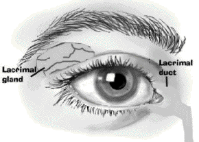 the workings of the lacrimal (tear duct) system around the eyes. The lacrimal gland is found above the outer edge of the eye under the eye brow. The lacrimal duct,which forms tears, is found on the inside corner of your eye and down the side of the nose. For various reasons, this system can malfunction and cause the eye(s) to be continuously wet. |
